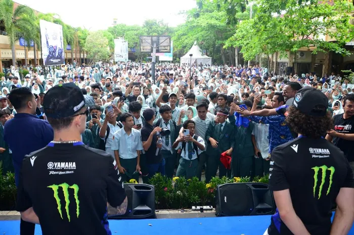 Tak hanya itu, para pelajar juga diberi kesempatan untuk bertanya langsung kepada kedua pembalap tersebut mengenai dunia MotoGP, persiapan sebelum balapan, serta bagaimana mereka menjaga kondisi fisik dan mental agar tetap prima di lintasan. Interaksi semacam ini memberikan kesempatan bagi para pelajar untuk lebih mengenal dunia balap motor secara lebih mendalam.